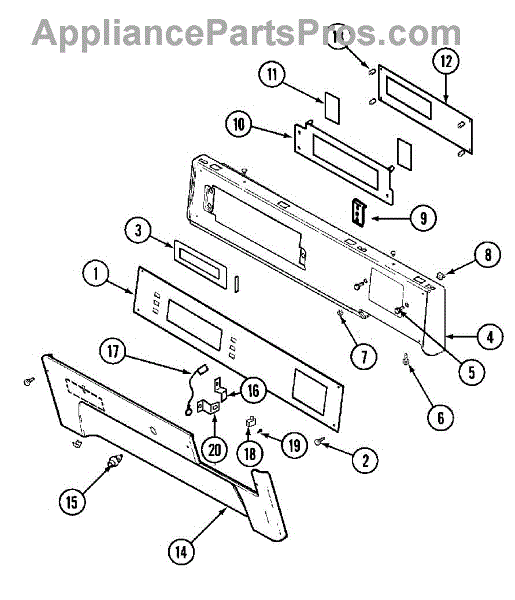 Lower display cover panel for dryer control area. Replaces cracked, broken, or missing lower display trim. Restores appearance of control panel.