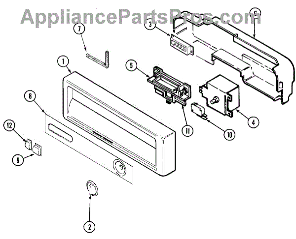 This door switch detects when the dishwasher door is fully closed and latched. Replacing a worn or intermittent switch restores reliable start/stop operation and ensures the safety interlock cuts power whenever the door is opened.