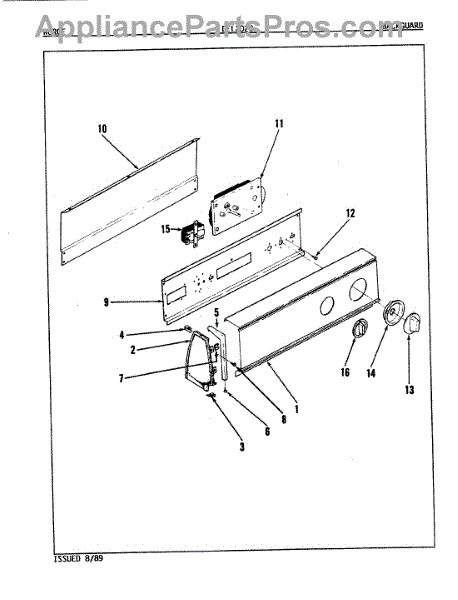 Parts for Norge DEL202WC: 01 - Control Panel (Orig. Rev. A-B) Parts