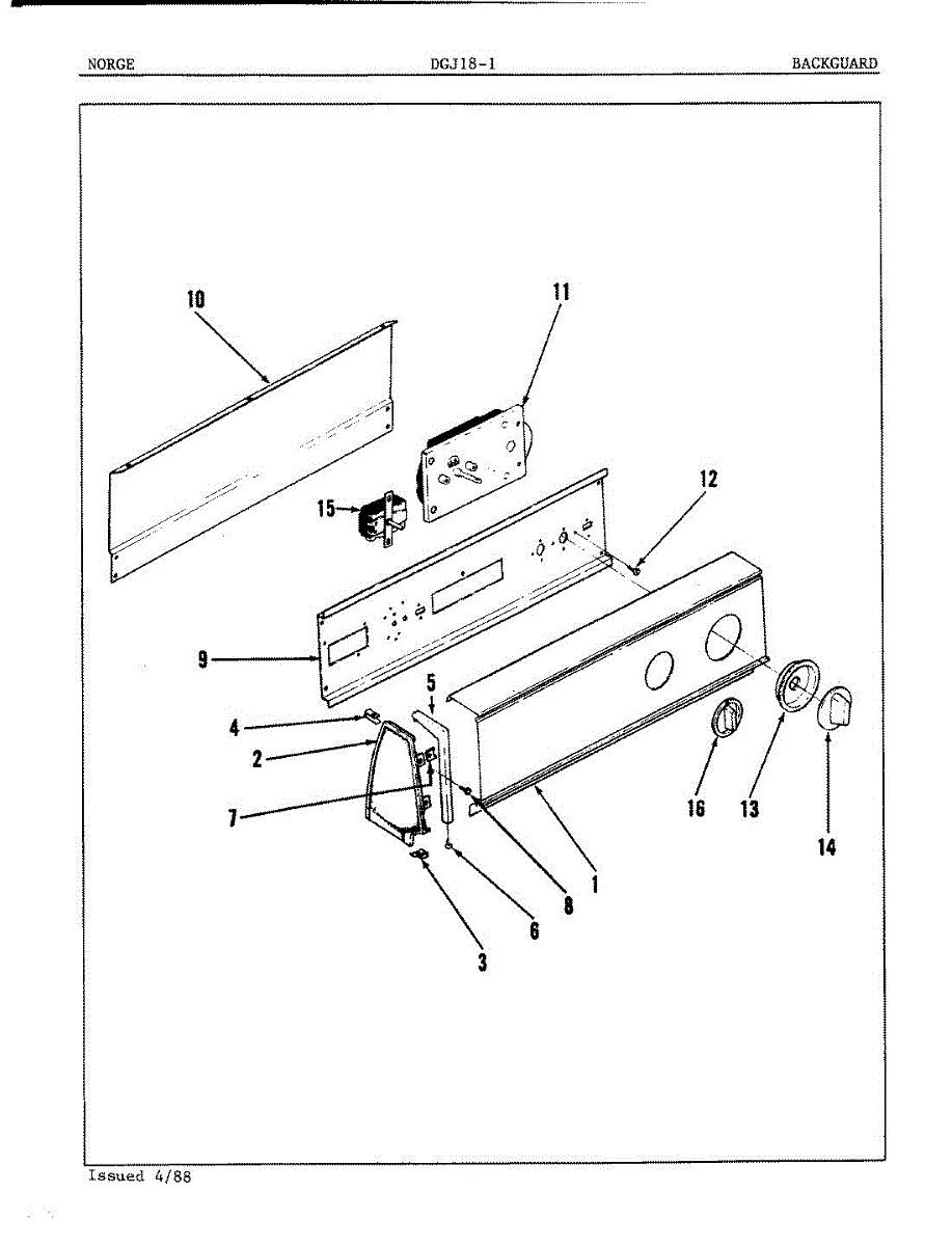 Parts for Norge DGJ181W: 01 - Control Panel (Orig. Rev. A) Parts