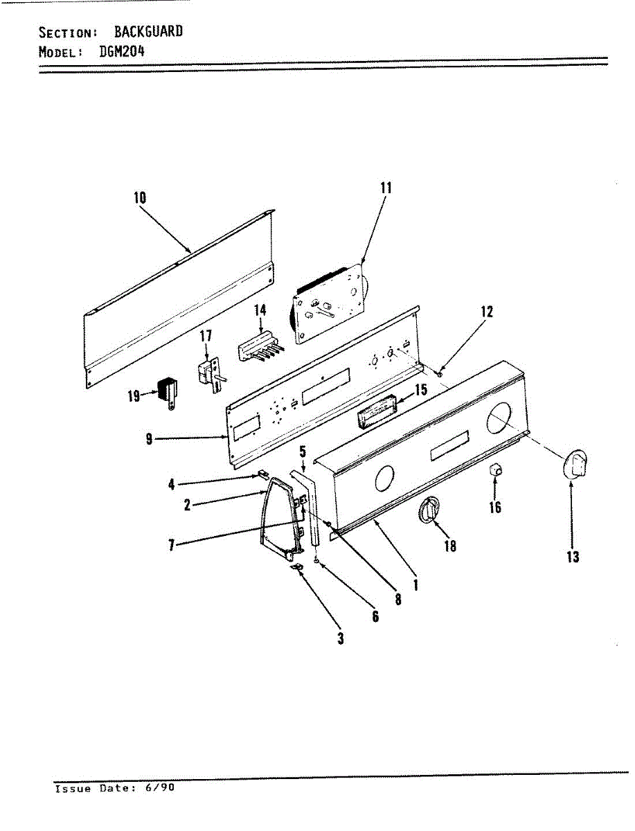 Parts for Norge DGM204A: 01 - Control Panel (Rev. A-D) Parts