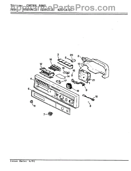 Parts for Norge NDU5CA-25: 01 - Control Panel Parts