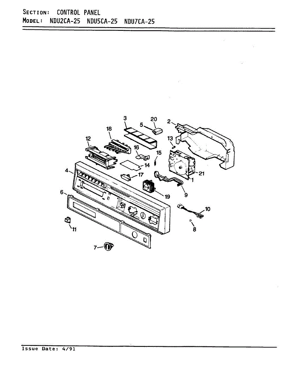 Parts for Norge NDU7CA-25: 01 - Control Panel Parts