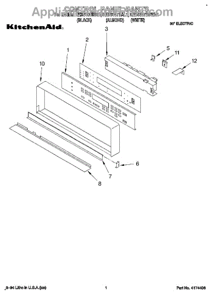 Parts for Kitchenaid KEBS107BAL1: 01 - Control Panel Parts