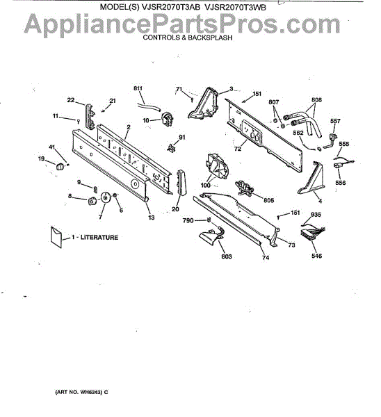 Parts for Ge VJSR2070T3WB: 01 - Controls & Backsplash Parts