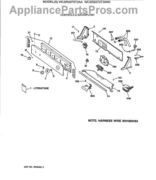 Parts for Ge WCSR2070T3AA: 01 - Controls & Backsplash Parts