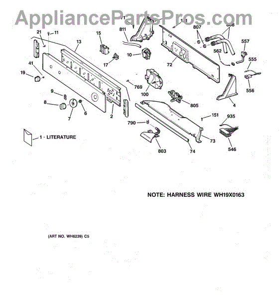 The Control Knob and Clip is an OEM part for GE washing machines and dryers. It attaches directly to the control shaft and is used to set the machine's cycles and settings. This knob allows for easy adjustment of washing or drying operations, making it a user-friendly interface for managing the appliance's functions.