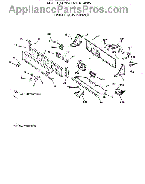 Parts for Ge YWSR2100T3WW: 01 - Controls & Backsplash Parts