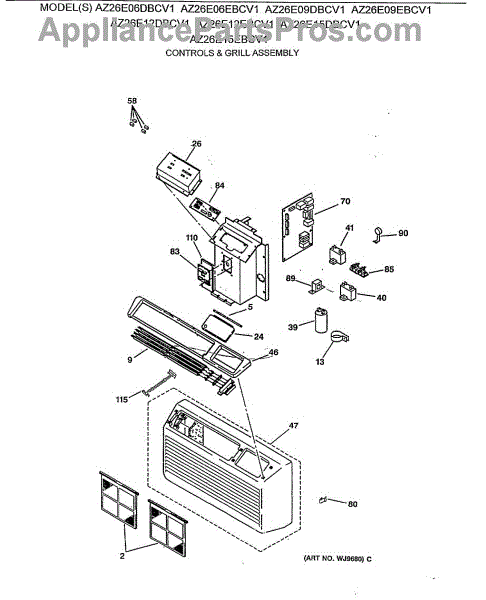 Parts for Ge AZ26E09DBCV1: 01 - Controls & Grill Assembly Parts