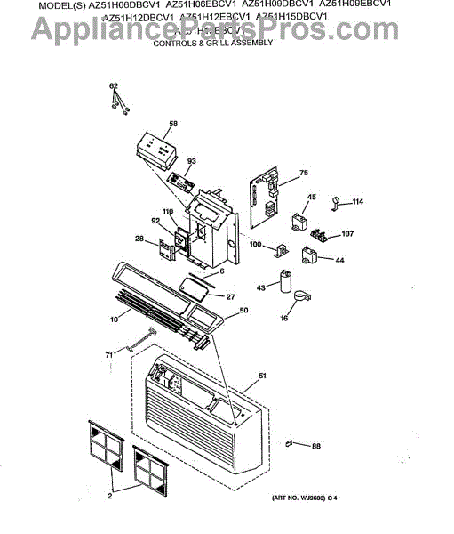 Parts for Ge AZ51H12DBCV1: 01 - Controls & Grill Assembly Parts