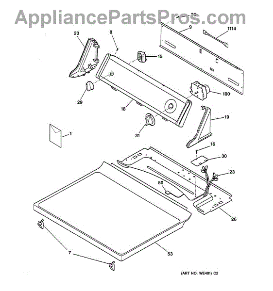 Parts for Ge NLL113EY4WO: 01 - Controls & Top Panel Parts