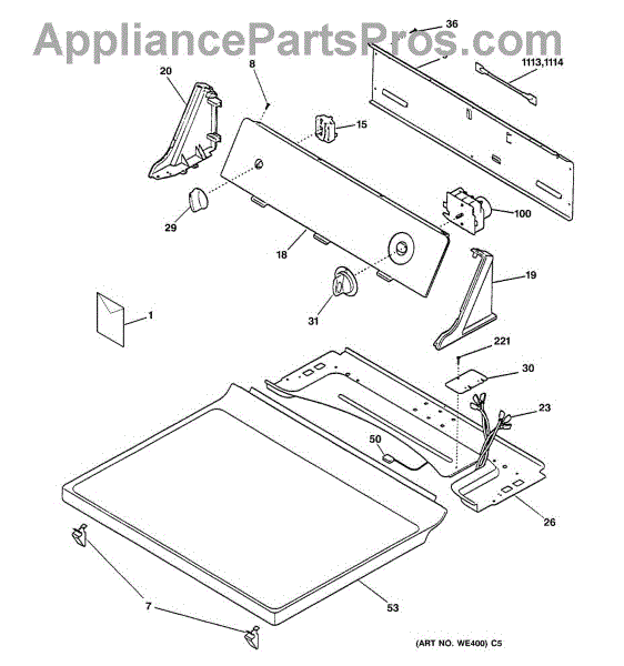 Parts for Ge NVL333EB4WW: 01 - Controls & Top Panel Parts