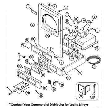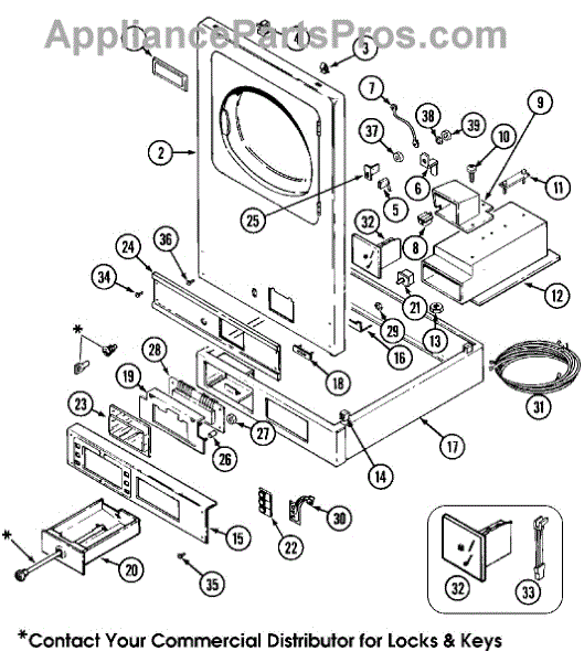 This lock assembly secures the appliance access panel and restores a proper, stable latching action for safe operation. It replaces a worn or broken access lock so the panel stays closed when the appliance is in use. What it does: