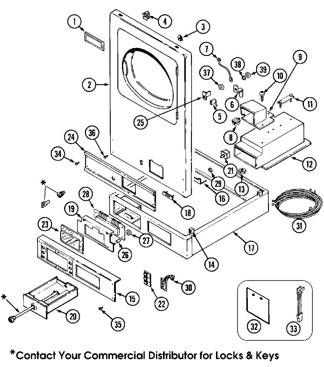 This lock assembly secures the appliance access panel and restores a proper, stable latching action for safe operation. It replaces a worn or broken access lock so the panel stays closed when the appliance is in use. What it does: