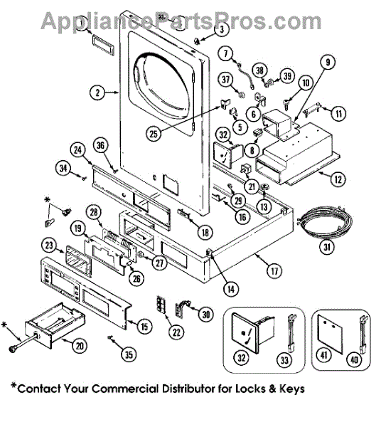 This lock assembly secures the appliance access panel and restores a proper, stable latching action for safe operation. It replaces a worn or broken access lock so the panel stays closed when the appliance is in use. What it does: