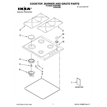 Parts for Whirlpool ICS304SM00: 01 - Cooktop, Burner And Grate Parts