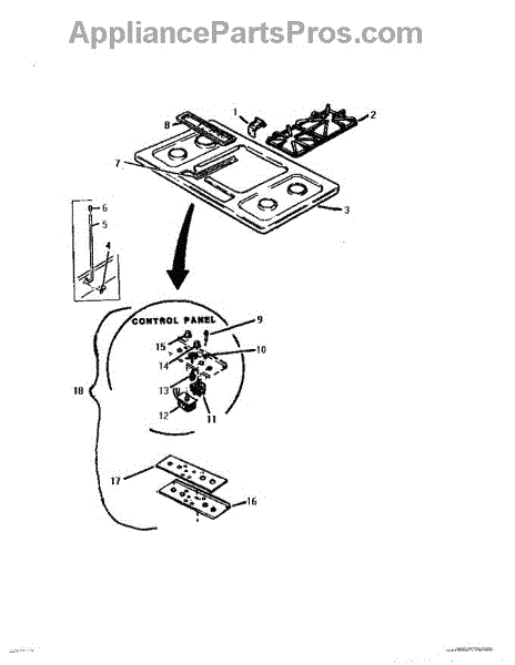 Parts for Thermador GTH36G: 01 - Cooktop & Control Panel Parts