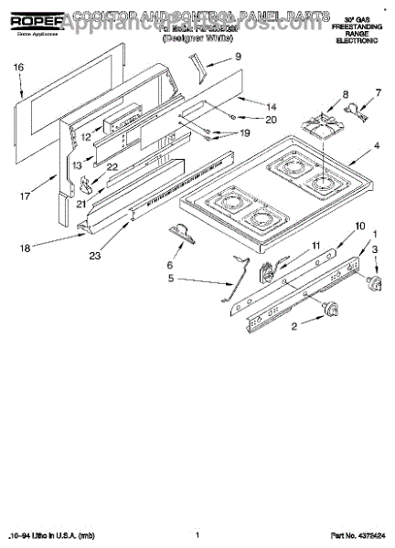Parts for Whirlpool FGP335BQ0: 01 - Cooktop And Control Panel, Literature Parts