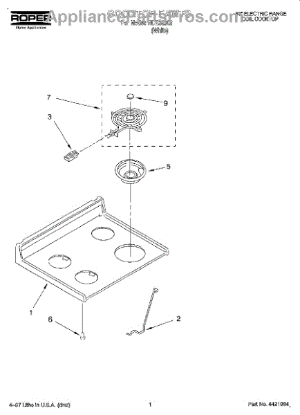 Parts for Whirlpool RDE32302: 01 - Cooktop, Literature Parts