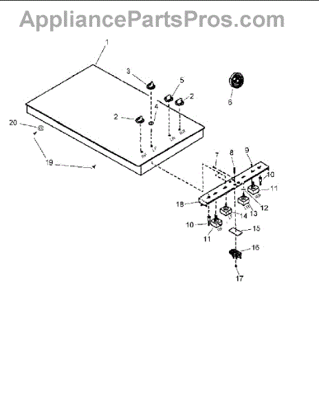 This surface burner infinite switch sits behind the knob and regulates power to the cooktop/range element. Replacing a failed switch restores accurate heat settings so the burner can turn on, modulate properly, and shut off as expected.