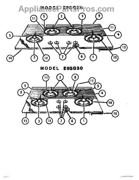 Parts for Thermador EIIGG36: 01 - Cooktop Parts