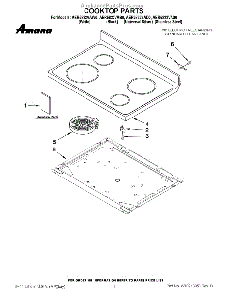Parts for Maytag AER5822VAB0: 01 - Cooktop Parts