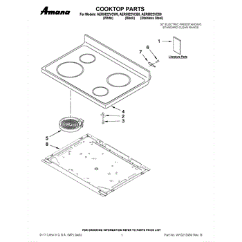 The Cooktop is an OEM part for Whirlpool ranges. This part serves as the cooking surface where pots and pans are placed for heating and cooking.