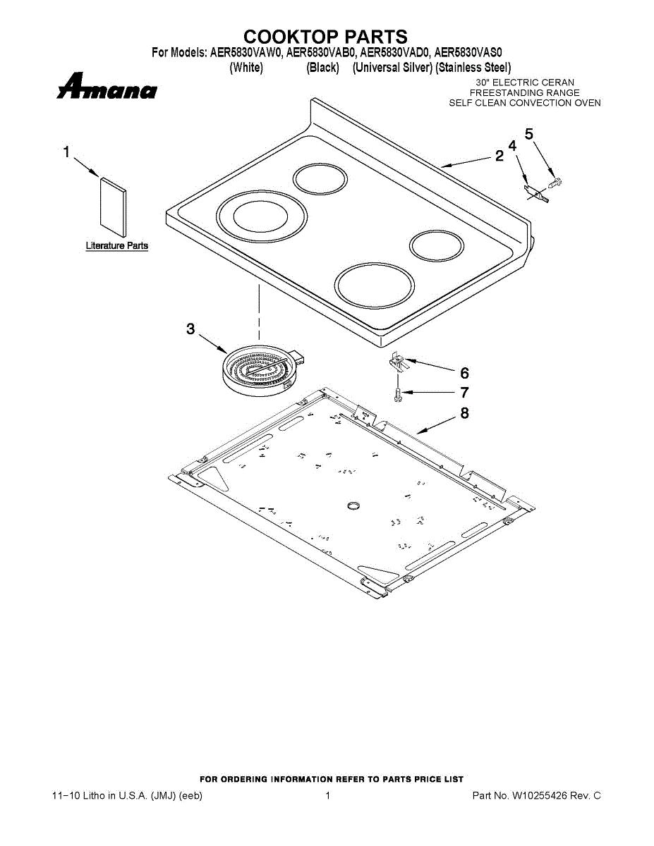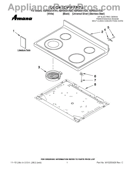 Replacement glass cooktop surface for electric ranges. Installs as the main cooking surface. Needed when cracked, broken, or damaged from impacts or wear.