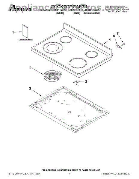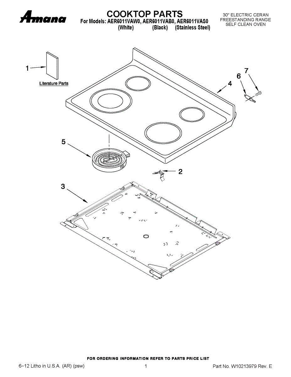 White glass cooktop for electric ranges. Replaces cracked, broken, or damaged glass cooking surface. Includes white trim. Direct replacement part.