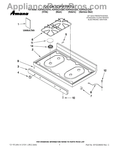 White porcelain cooktop surface panel for gas ranges. Replaces cracked, chipped, stained, or discolored cooktops. Installs on top of range chassis.