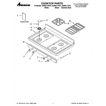 White metal cooktop panel that covers the top of your gas range. Replace if cracked, chipped, stained, or showing wear from years of cooking use.