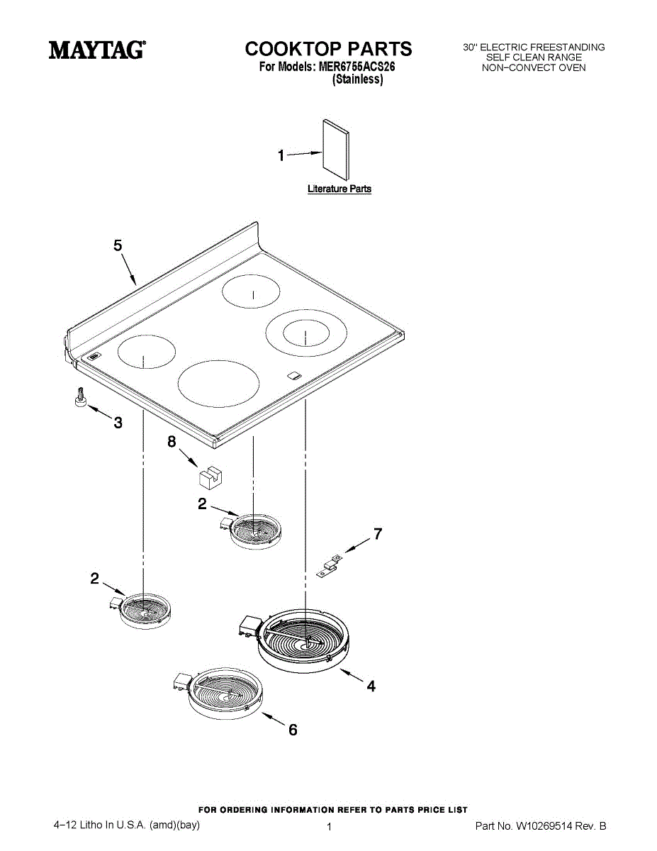 Parts for Maytag MER6755ACS26: 01 - Cooktop Parts