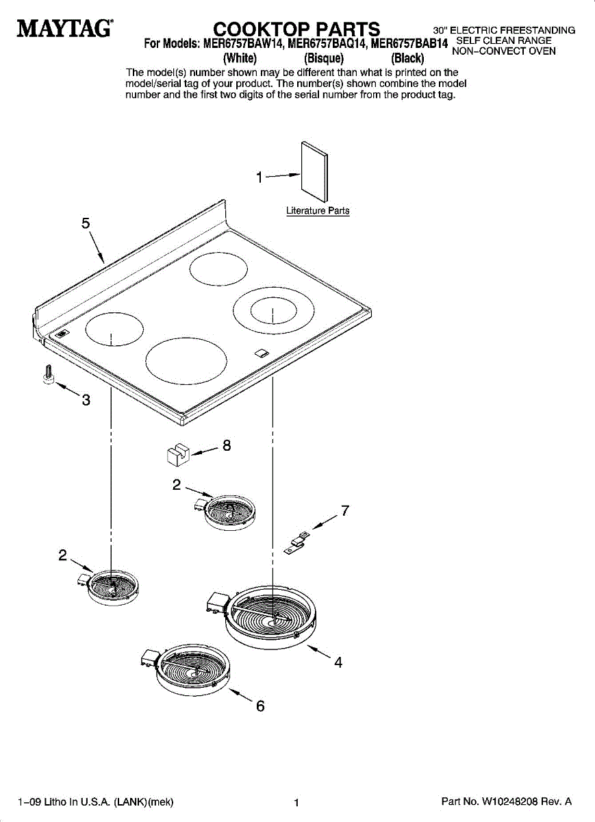 Parts for Maytag MER6757BAQ14: 01 - Cooktop Parts
