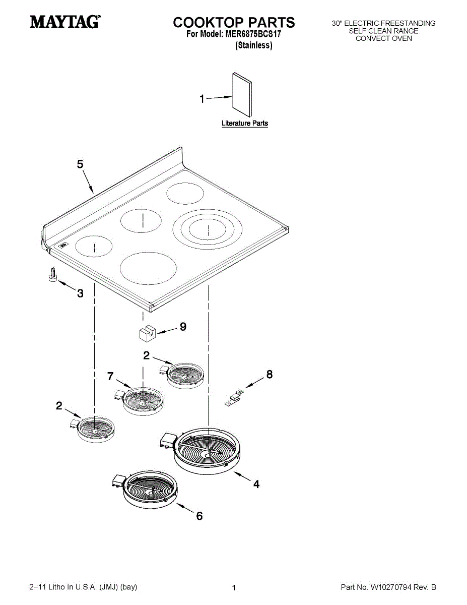Parts for Maytag MER6875BCS17: 01 - Cooktop Parts