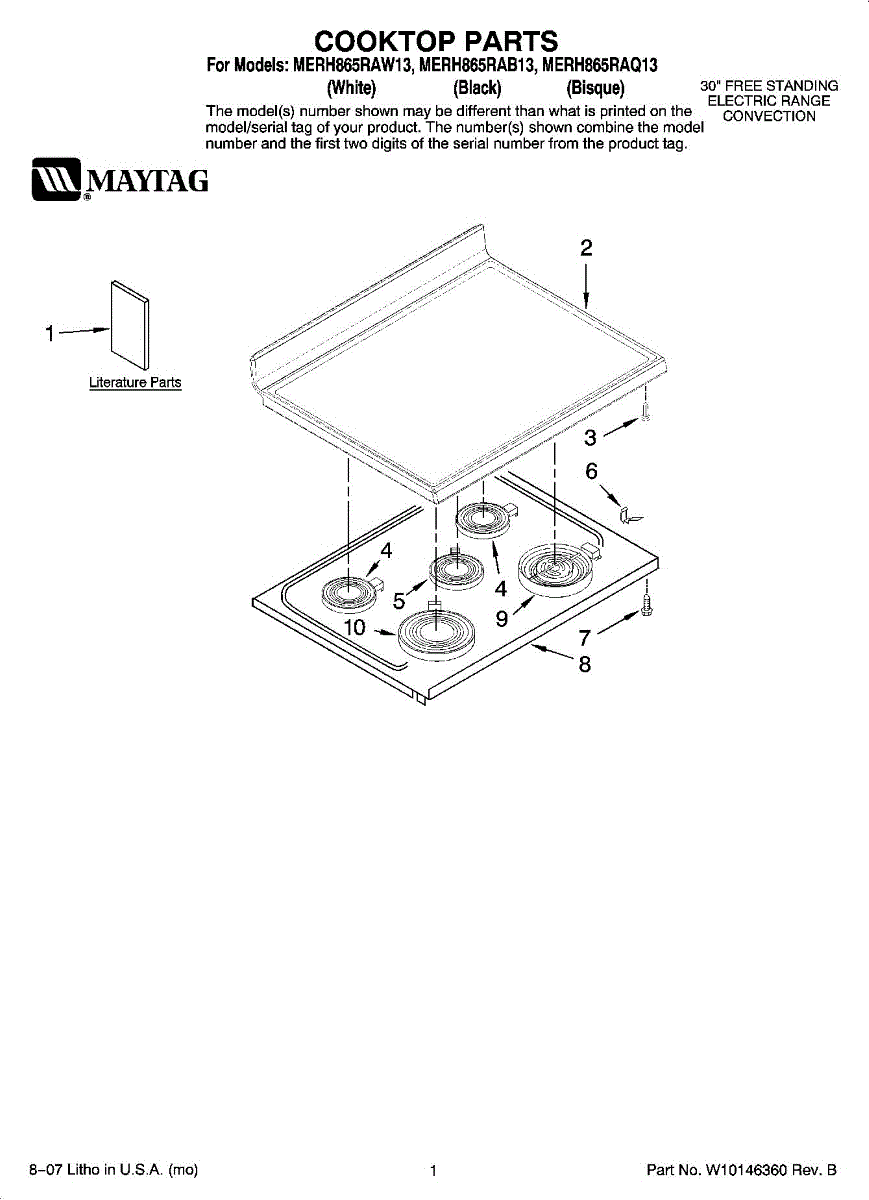 Parts for Maytag MERH865RAB13: 01 - Cooktop Parts