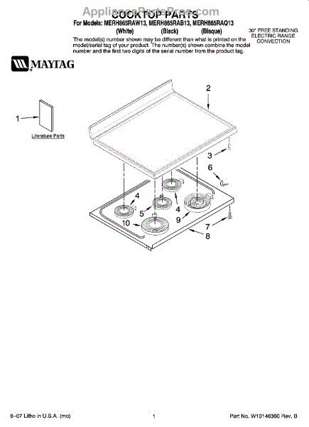 Parts for Maytag MERH865RAW13: 01 - Cooktop Parts