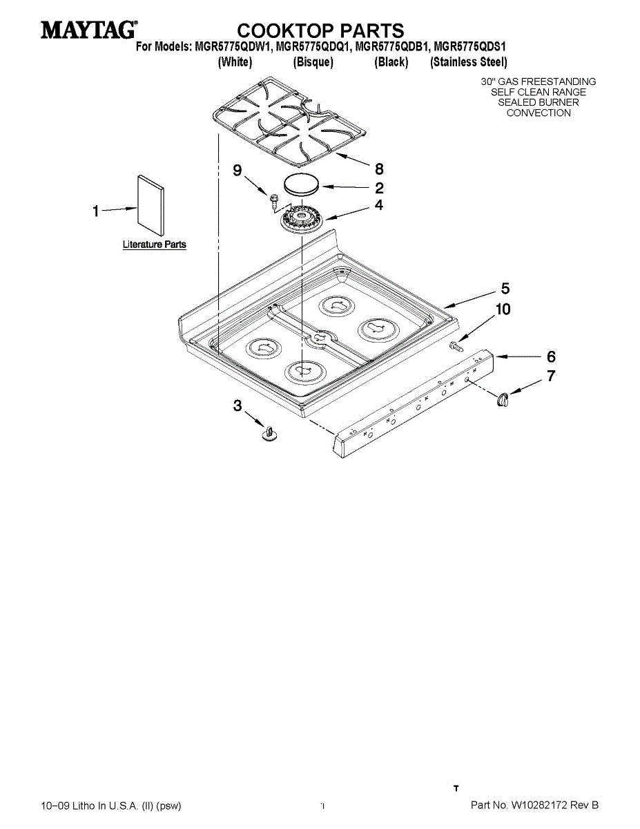 Parts for Maytag MGR5775QDB1: 01 - Cooktop Parts