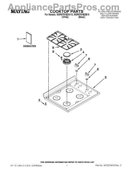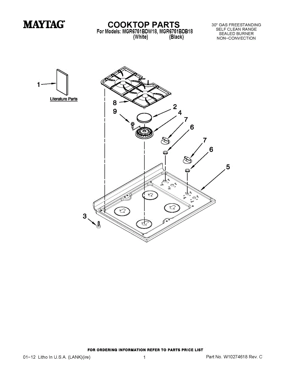 Parts for Maytag MGR6751BDW18: 01 - Cooktop Parts