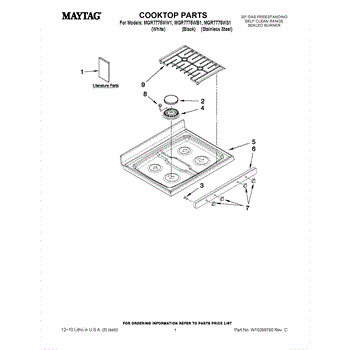 This burner head mounts on the cooktop and distributes gas evenly to produce a steady flame. Replacing a worn or damaged head restores proper flame pattern and helps your burner light quickly and cook consistently.