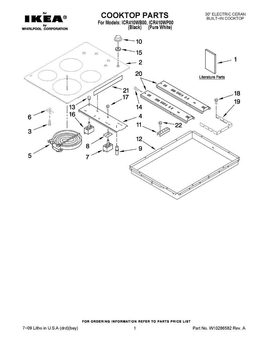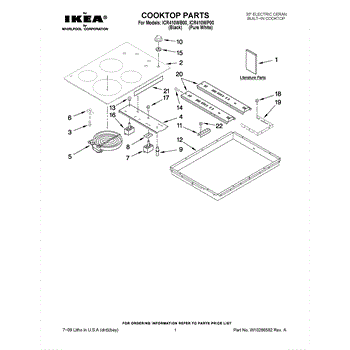 Complete cooktop surface assembly. Replaces cracked, chipped, or damaged cooktop top. Includes burner openings and mounting hardware for installation.