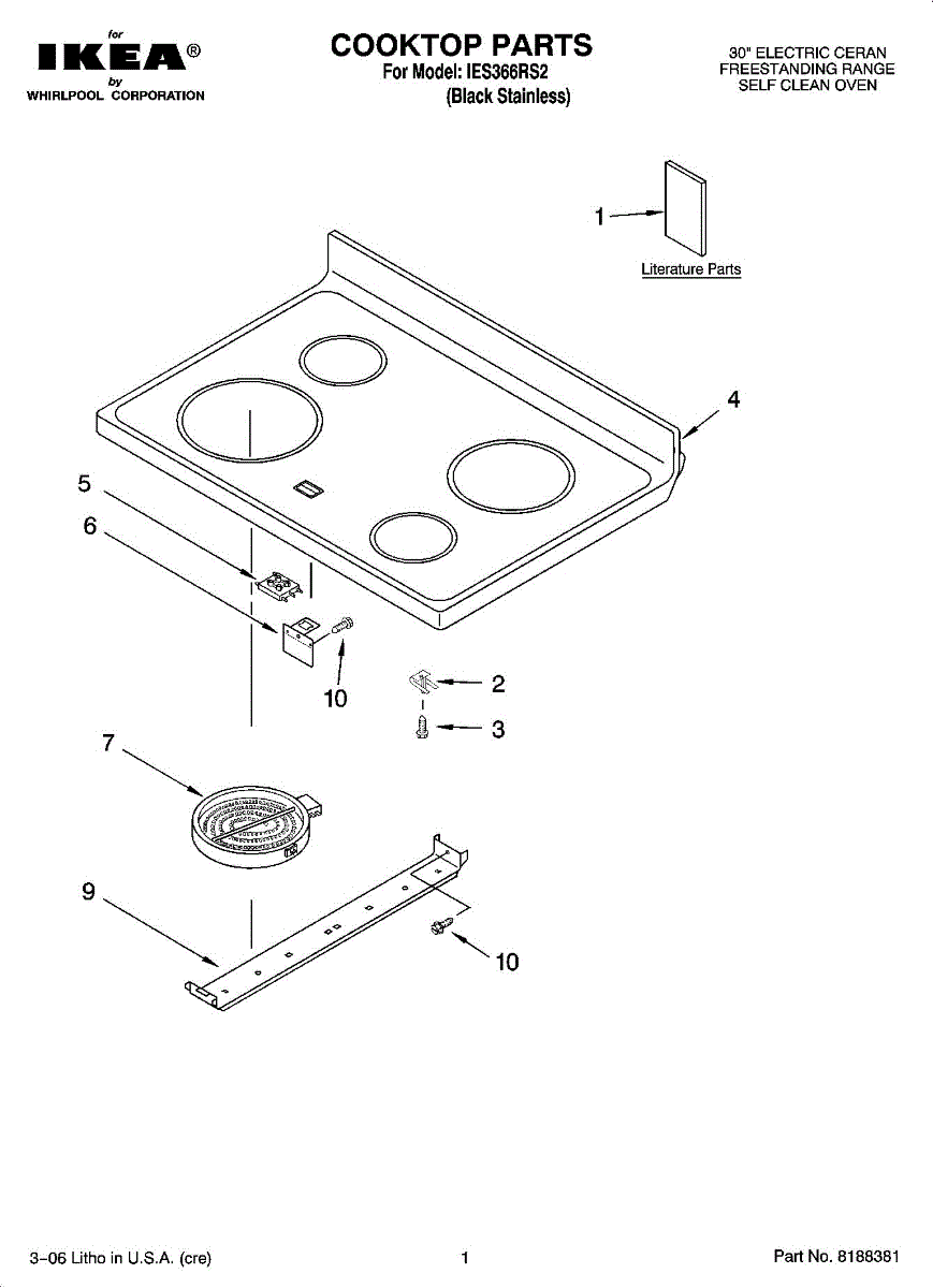 Parts for Whirlpool IES366RS2: 01 - Cooktop Parts