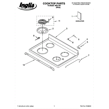Parts for Whirlpool IME31301: 01 - Cooktop Parts