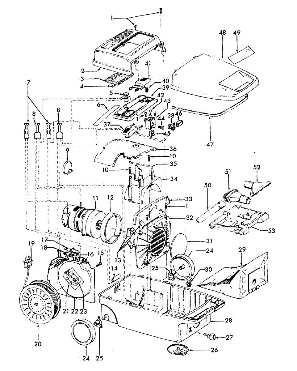 Parts for Hoover S3505---: 01 - Cordreel, Mainhousing, Cleaningtools Parts