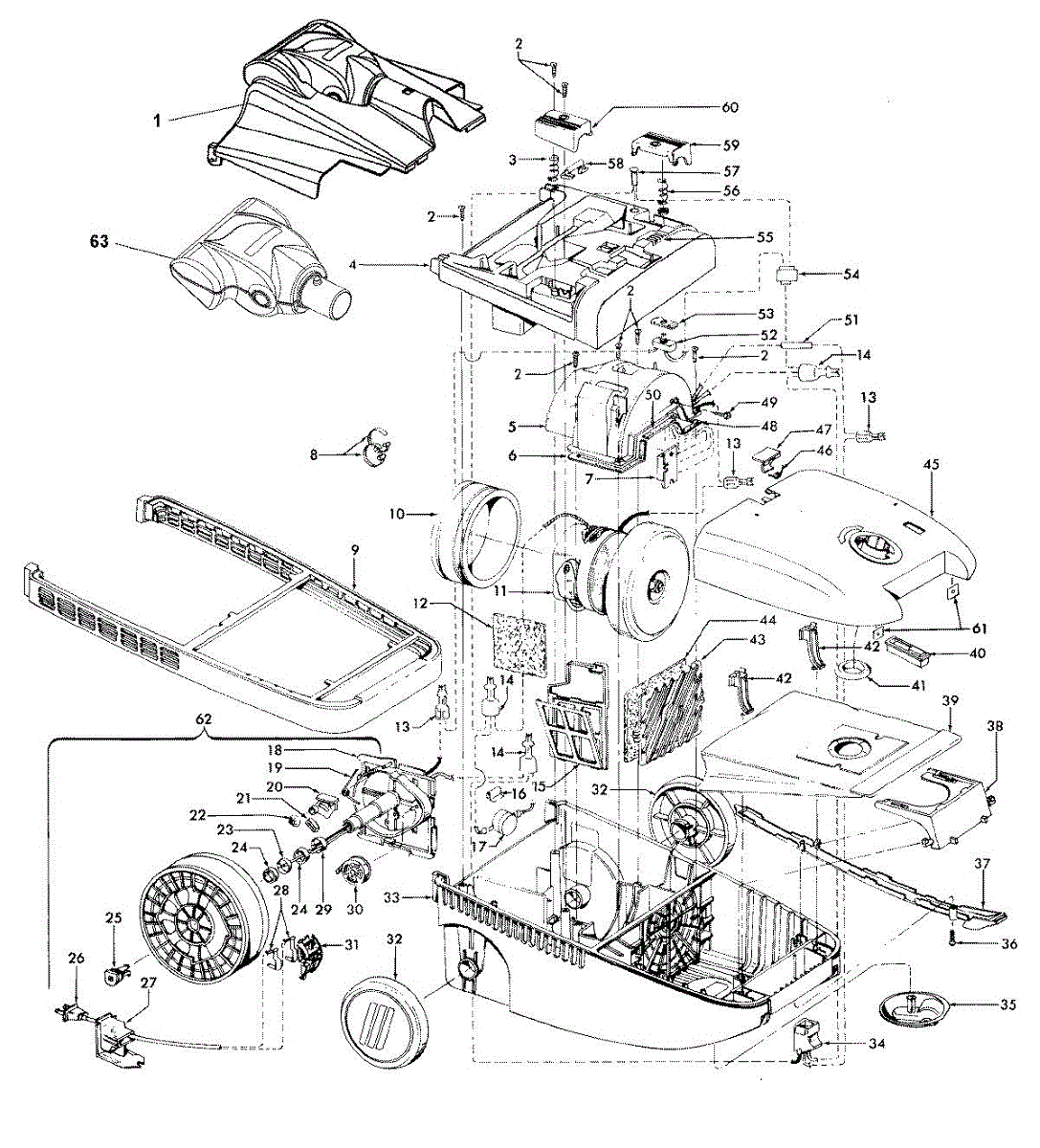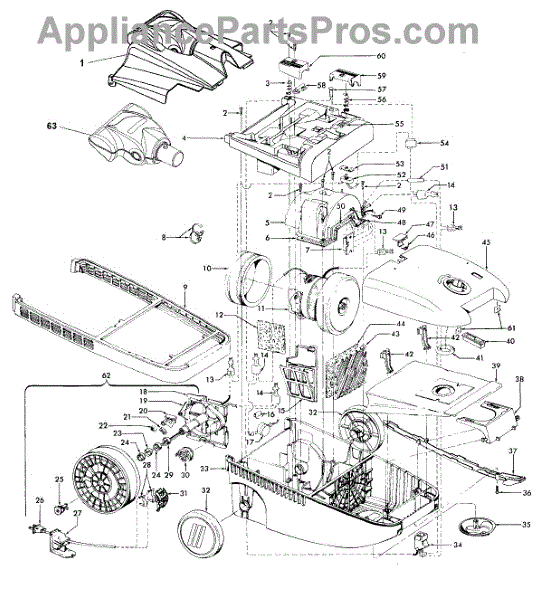 Parts for Hoover S3639050: 01 - Cordreel, Mainhousing, Cleaningtools Parts