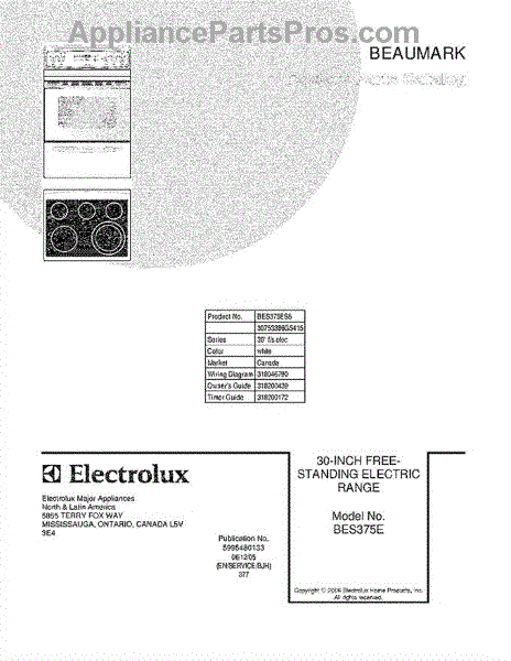 Parts for Crosley BES375ES5: 01 - Cover Parts