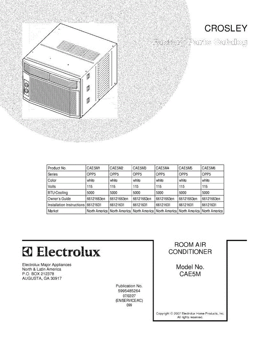 Parts for Crosley CAE5M2: 01 - Cover Parts