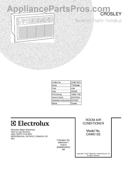 Parts for Crosley CAWE12ER1: 01 - Cover Parts