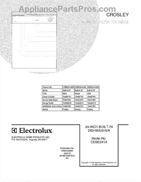 Parts for Crosley CDBE241AB0: 01 - Cover Parts
