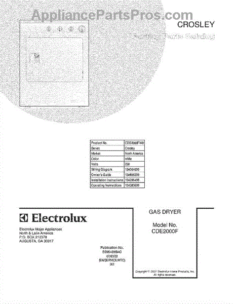 Parts for Crosley CDG2000FW0: 01 - Cover Parts