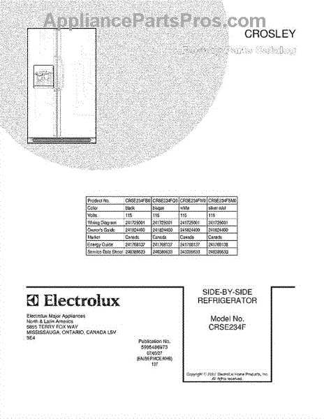 Parts for Crosley CRSE234FQ0: 01 - Cover Parts